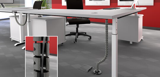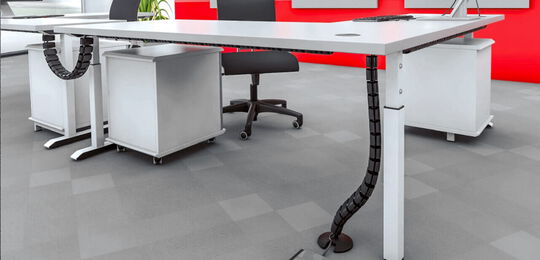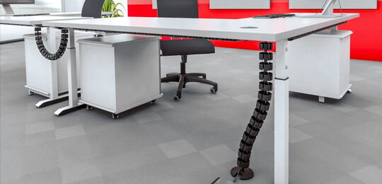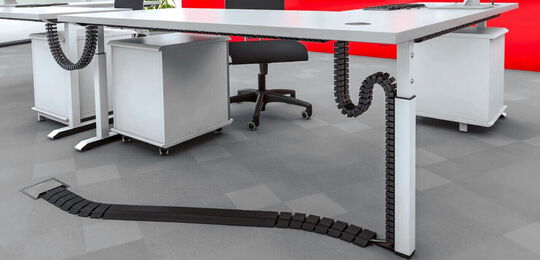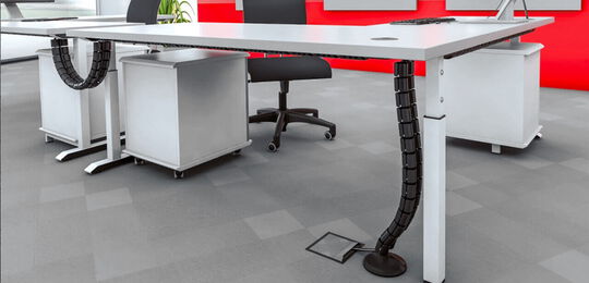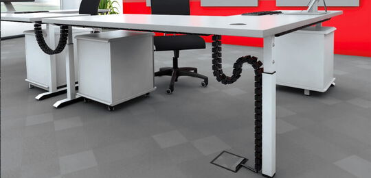 Laden Sie sich hierunser gesamtes Kabelmanagement-Programm mit allen Kabelketten, Tischanbindungen, Fußplatten, Adaptern, Kabeldurchführungen und Kabelbefestigungen herunter.